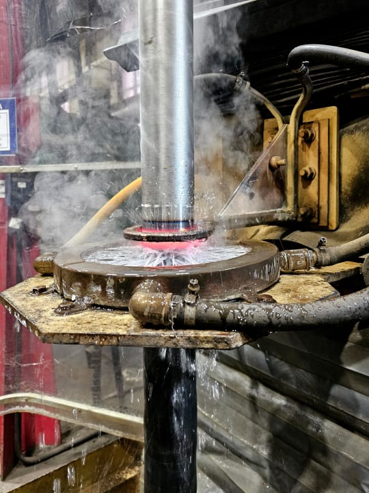 Заготовка нагревается индуктором до критической температуры и мгновенно охлаждается. Такой процесс позволяет повысить твёрдость поверхностного слоя, сохранив при этом вязкость и пластичность сердцевины