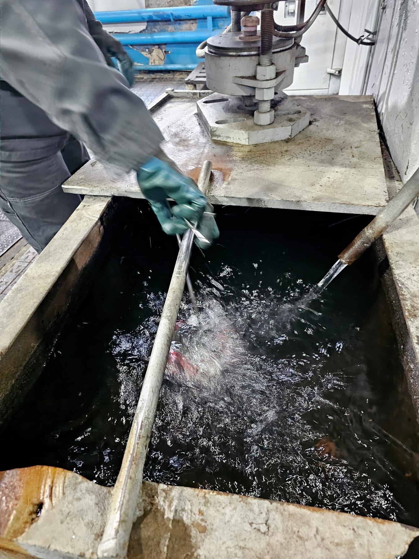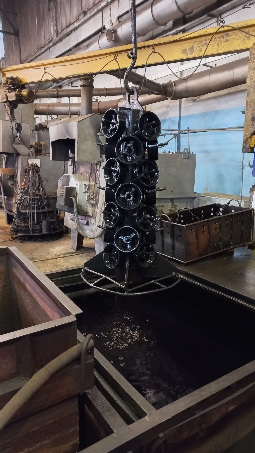 Нагрев металла до температуры выше критической (tmax 1250°C) и быстрое охлаждение в воде, масле или на воздухе. Цель — увеличение твёрдости и прочности